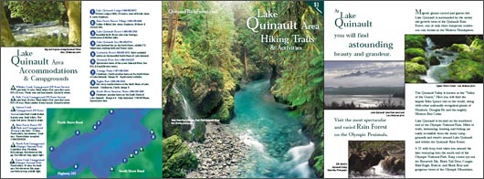 Lake Quinault is located on the southwest end of the Olympic National Park. Miles of trails, swimming, boating and fishing are easily accessible from the many campgrounds and resorts around Lake Quinault and within the Quinault Rain Forest.